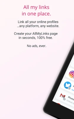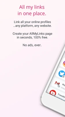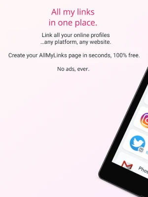 Create your AllMyLinks profile in seconds add all your social links (any website or platform, really). You are in complete control, there are NEVER any ads on your profile.