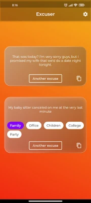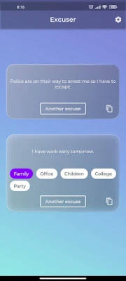 Need an excuse fast? Our Excuser app is here to help! With a simple tap, you can generate a variety of excuses to get you out of any sticky situation.