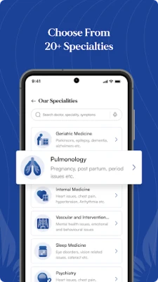 Find a doctor by using different search criteria, like doctor name, specialty or location, and book appointments. Book appointment for the same day or a future date as per your convenience.