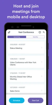 Host, schedule and join Vast Conference meetings no matter where you go!