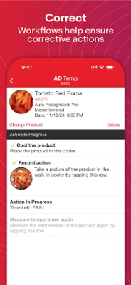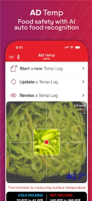 AD Temp is the safest and most secure way to take food temps and automate other food safety tasks. The app eliminates inaccuracies and simplifies the HACCP process by capturing the temperature, logging it digitally, and triggering workflows when corrective actions are needed. When enabled, the app can also automatically recognize food items using AI to further automate food safety.