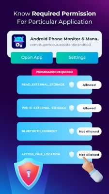 - Permission: Check which application use which permission in you phone. Also manage those permissions.