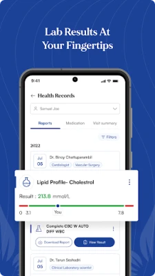 - Add and keep track of your medications, reports, visit summary and discharge summary