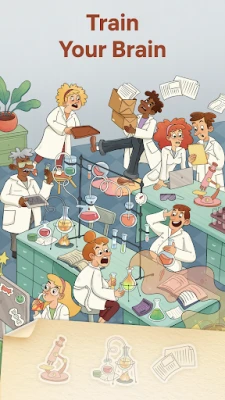Also Hidden Spots differs from all other scavenger hunt games with its unique art and really enjoyable gameplay. Usually in searching games there is a timer or other time limits that do not allow you to relax and really savor the process of playing finding games. In our object hunt game you will not have any time limits - you can solve puzzles with a convenient tempo and find the object as long as you want. No timer, no pressure - only high-quality object hunt gameplay from the trusted puzzle games for adults developer. And one more - in Hidden Spots you will find really funny levels with unexpected hidden objects. Can you imagine how much fun it is to find the object when it is the falling scientist or the goose pinching the angry neighbor?