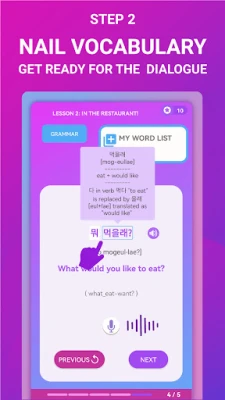 The material has been organized into 20 exciting dialogues to make the learning as lively and meaninful as possible! After the course the user will be able to confidently travel to S.Korea and be able to interact with local Koreans on day-to-day topics. Install to check out the lesson previews!