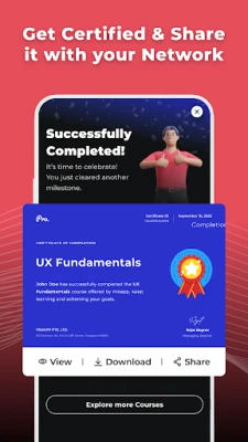 At the end of your learning journey, a certificate of achievement awaits you! This certificate stands as a testament to your dedication and knowledge in UX Design, enhancing your portfolio and paving your way in the UX Design field.