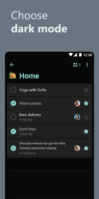 Microsoft To Do’s modern, easy-to-use experience makes your lists unique, with customizable features like emoji in lists, colorful themes, dark mode, and more. Plus, shared lists help you stay connected and collaborate with family, friends, and colleagues.