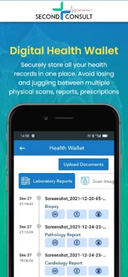 Forget the hassle of carrying all your reports and apprehension of losing your reports. With Second Consult digital health wallet, you can store and save all your reports, lab reports, radiology reports or doctors prescriptions securely. You can easily access them from your dashboard at any time and any place.