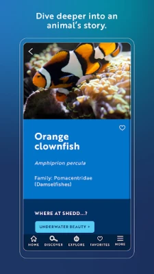 Dive into the world of fishes, mammals, birds, reptiles, jellies and bugs at Shedd Aquarium — right from your mobile device. Find your favorite animals faster using the search feature, at the aquarium, or at home. At the aquarium, scan QR codes to find out more about the animals in each individual exhibit. Save your “likes” for animal species, exhibits, or individual habitats on a single screen. Plan your visit by reviewing our building map.