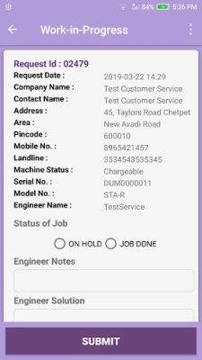 Service Efficiently Mobile App customised for Syndicate Diagnostics Pvt. Ltd.