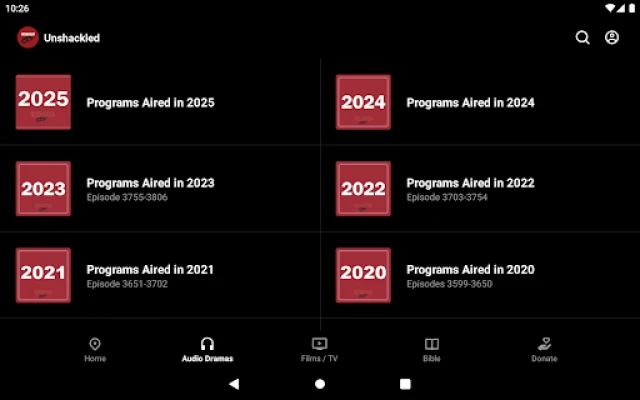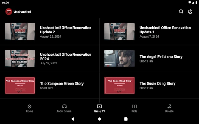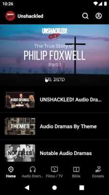 - Listen to current and past episodes - Watch short films of people "unshackled" - Tune in to latest podcast - Share your favorite episodes, films & podcasts via Twitter, Facebook, or email - Stay up to date with push notifications - Link to sermons on PGMTV - Donate easily